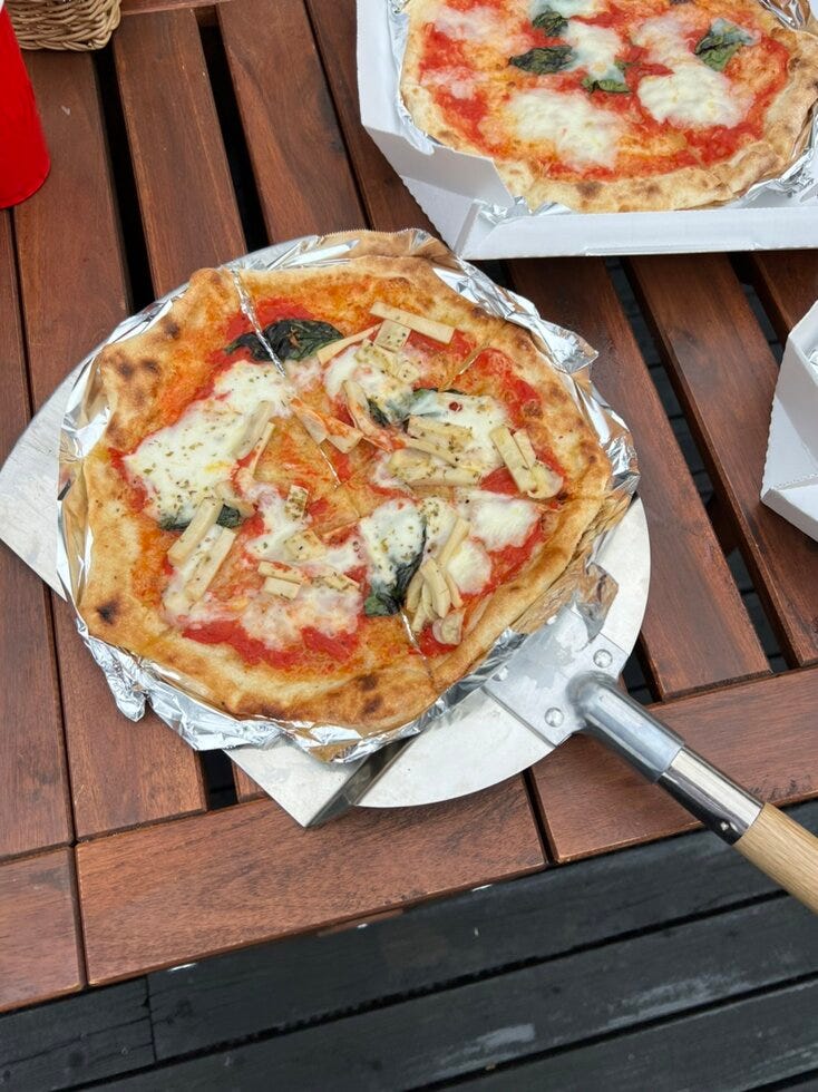 2Fのウッドデッキで富士山を見つつ自然を感じながら食べるピザは格別でした![]()