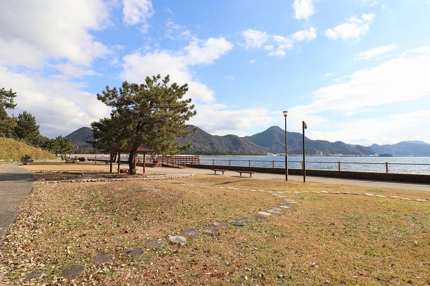 帰りに周辺環境を調べに足を運んだのが、徒歩3分ほどでついた牛臥山公園。駐車場やトイレ、ベンチなどが整備された綺麗な公園です♪なんといっても目の前に広がる海と、その奥に連なる山々とのコントラスト。仕事を忘れて、ベンチでほっこりしたくなる風景でした!